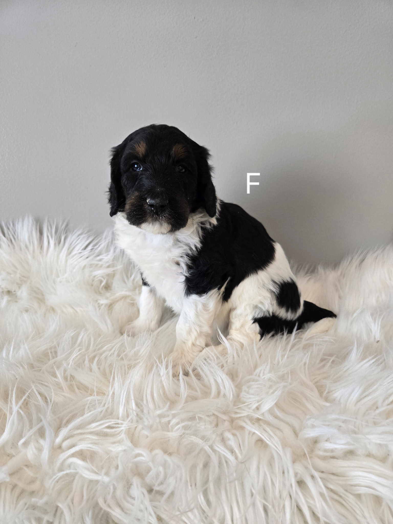 #11 Sunshine/Tahiti - Cute F1B Bernedoodle female! She's got a nice black and white coat and tan points! $2000
