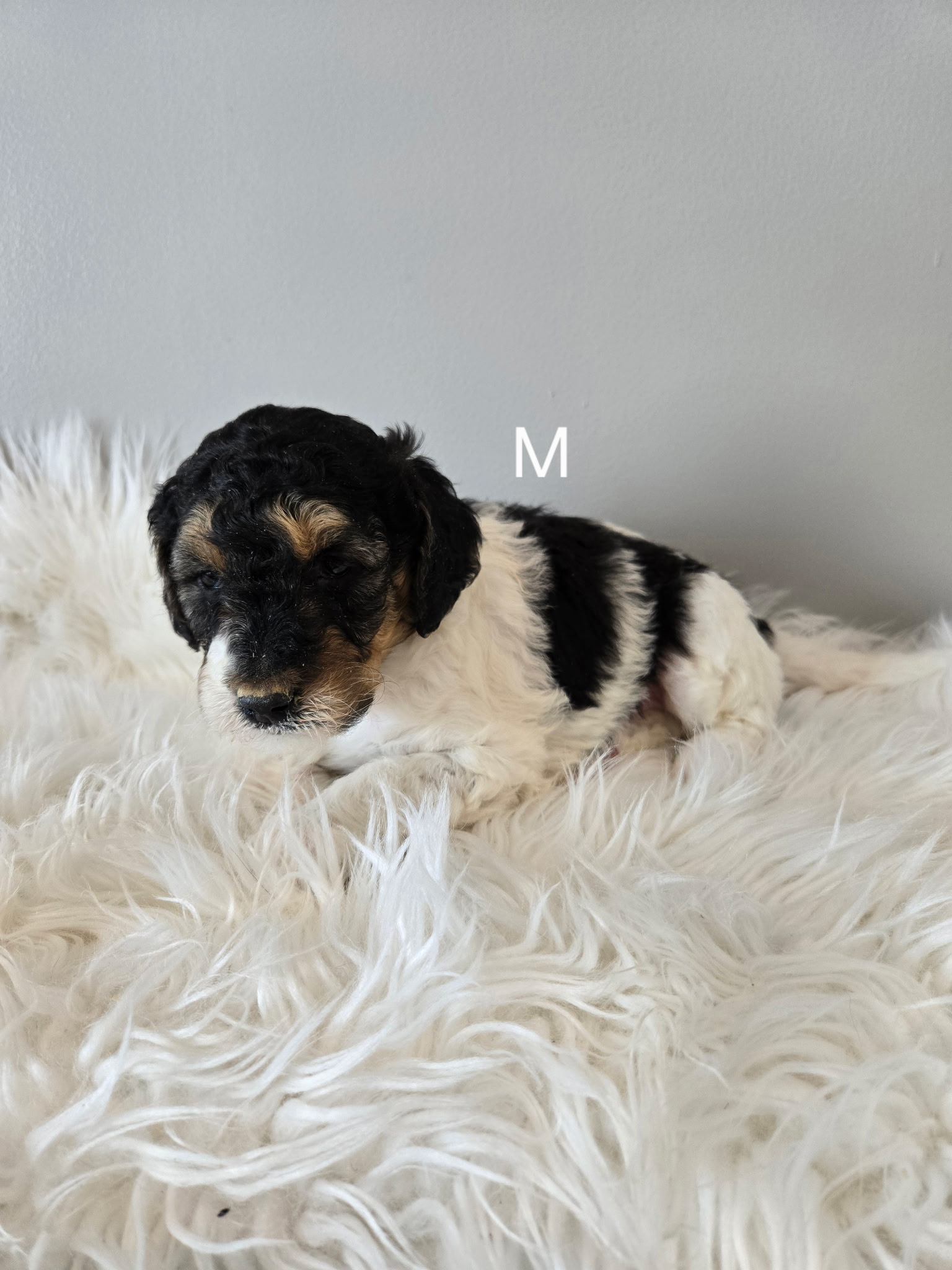 #16 Sunshine/Tahiti - F1B Bernedoodle male, He has a nice curly black and white coat! $2000