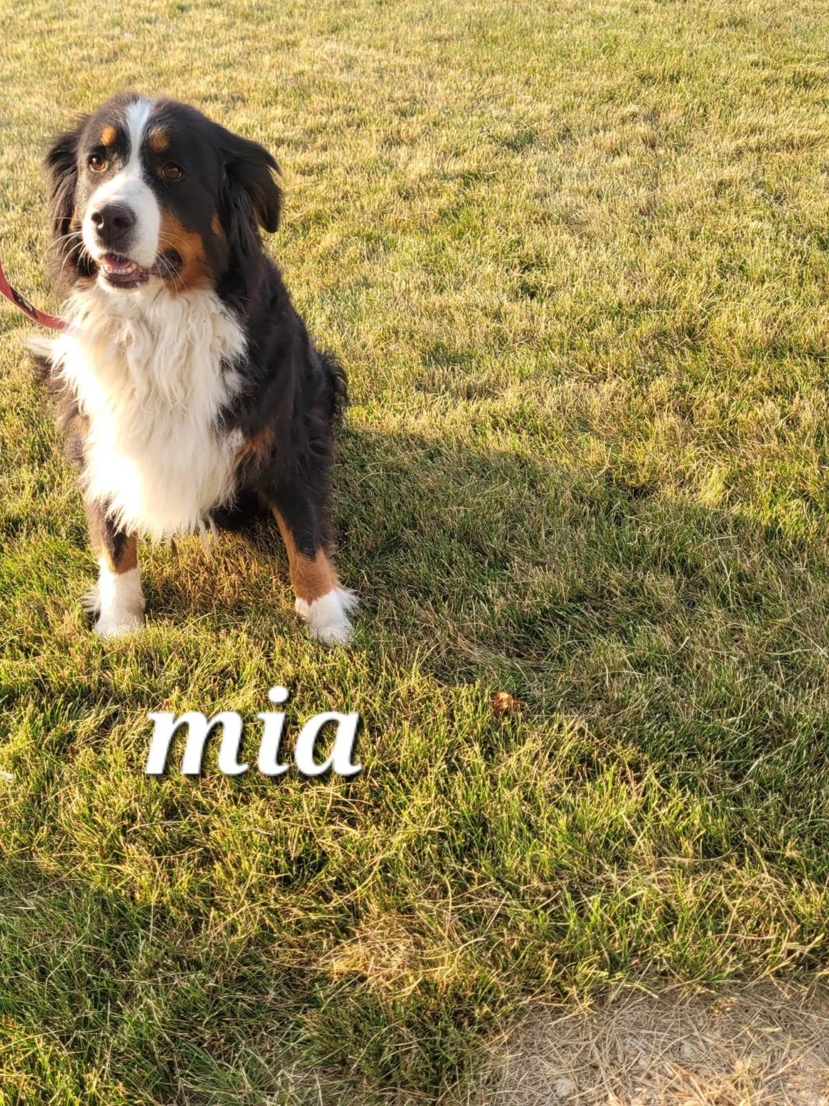 Mia is one of our very friendly, sweet Bernese Mountain Dogs! She loves spending time outside and has a playful personality!