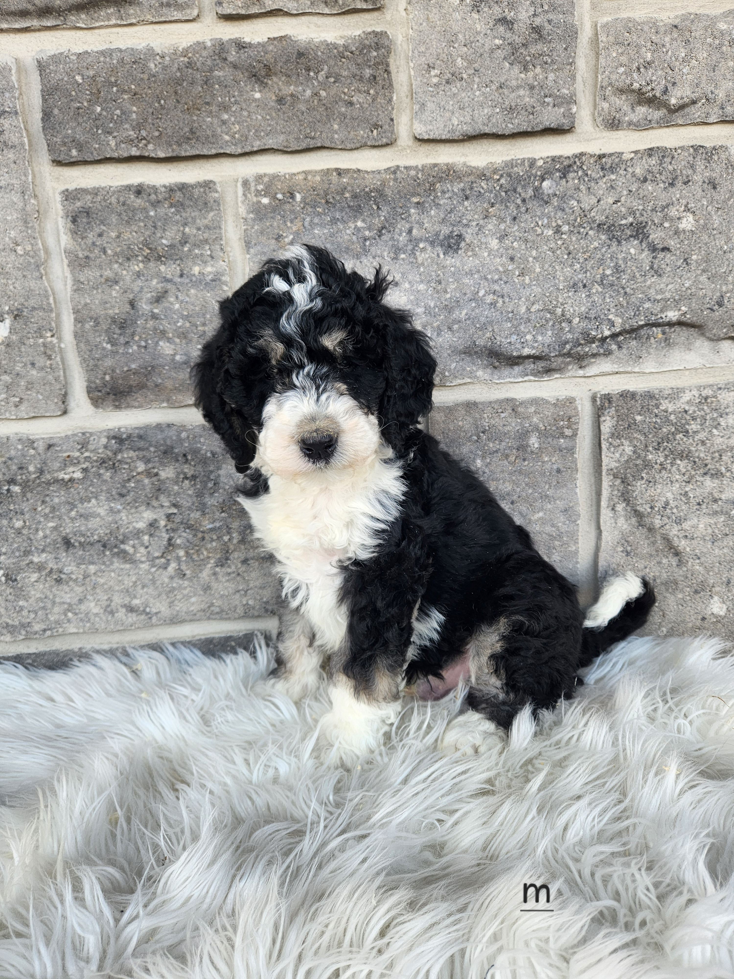 Tulip and Tahiti - Cute Bernedoodle male! he is black and white with a nice curly coat! $2000